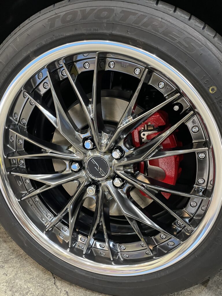 - 大人の車高です。ホイール20インチにして良い感じです。アライメントもしっかりと施工します。