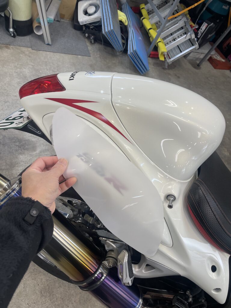 バイクは形状が細かく複雑なので、パーツごとにプロテクションを施工していきます。