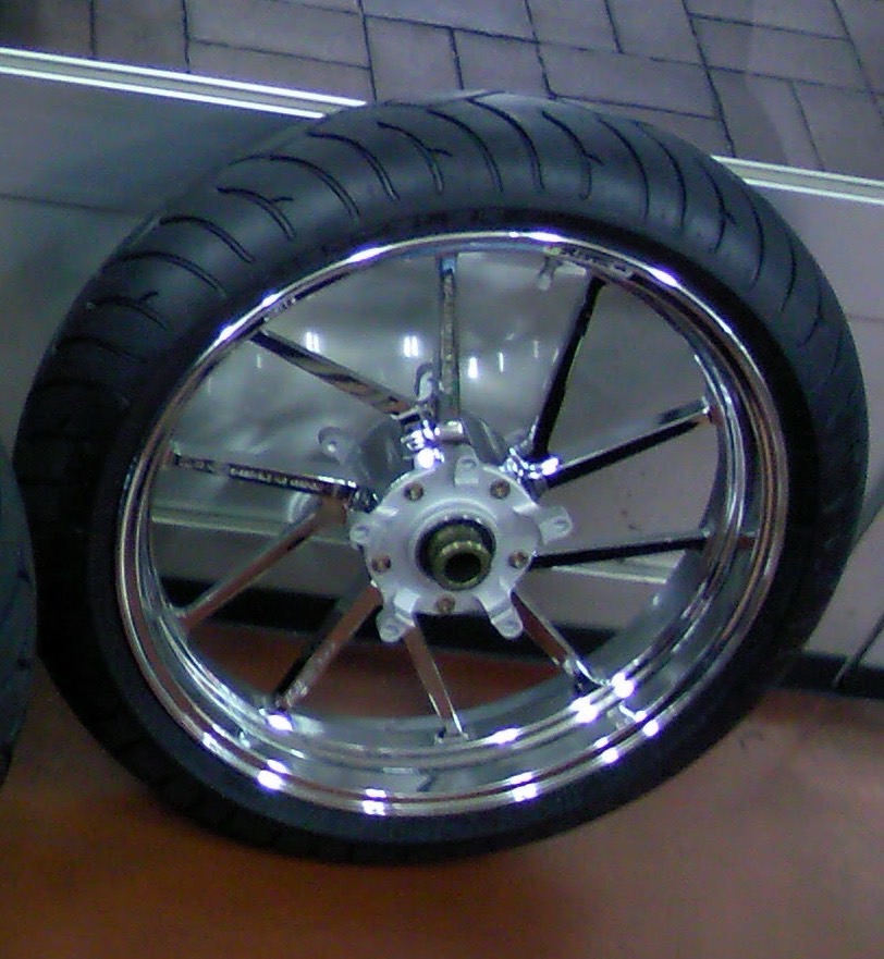 バイクは基本的にホイールを外して、細かい部分までしっかりとコーティングします。バイクホイールは、ブレーキダストが固着しやすく汚れるを落ちにくくなるのでホイールコーティングは効果的です。