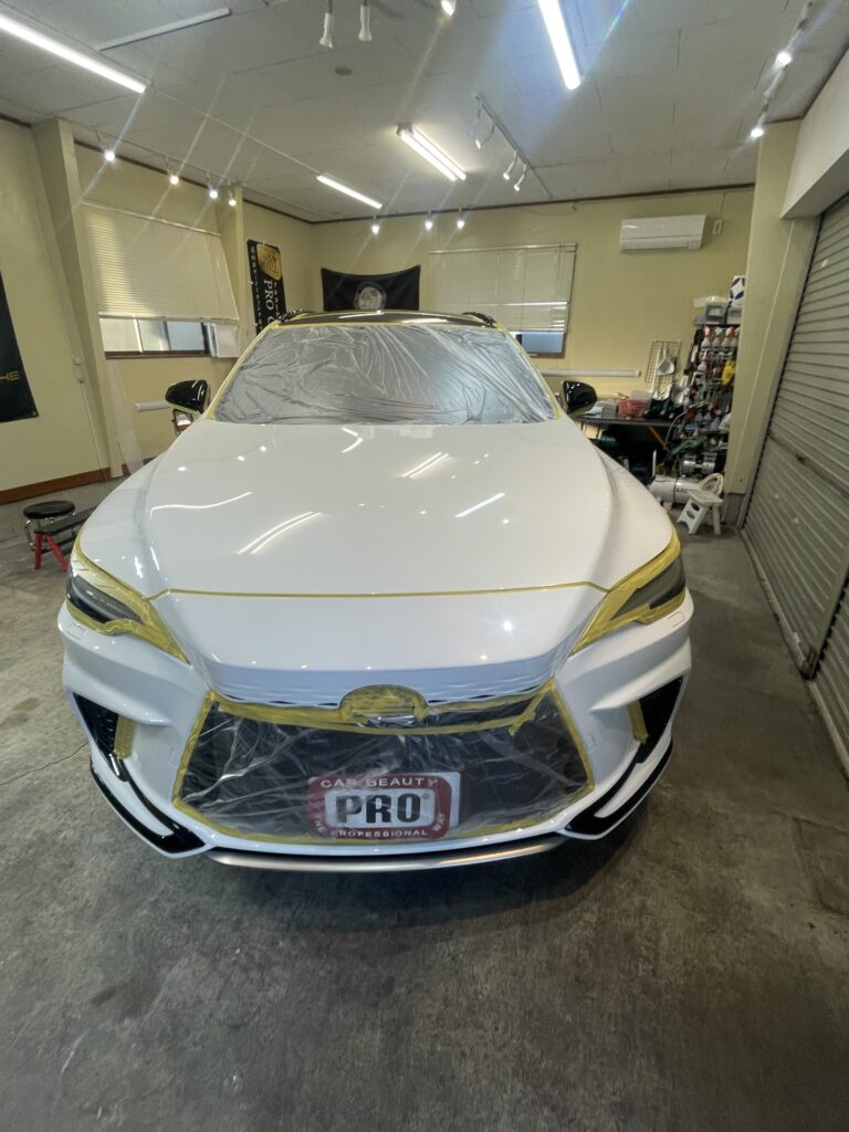 今回の車両は、レクサスRX 500h Fスポーツ 研磨とセラミックコーティング(EXE zero7)、ウィンドゥガラス全面、ホイールコーティングを施工しました。