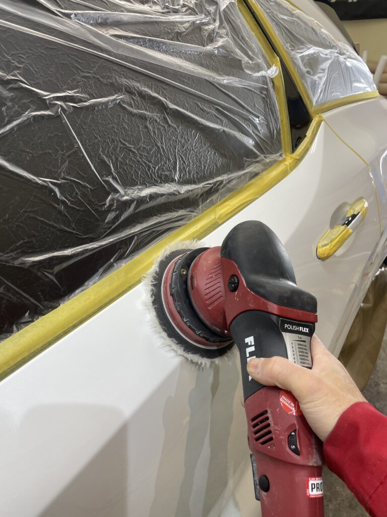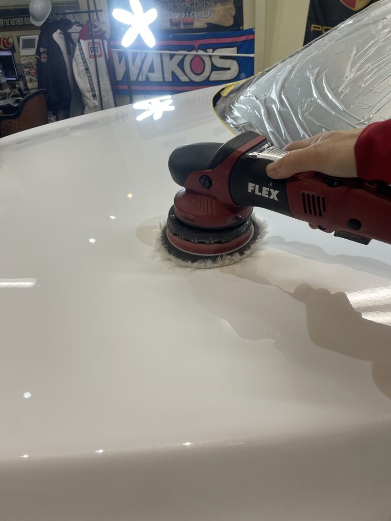研磨を三種類のバフを使用し、古いコーティングやキズを除去します。