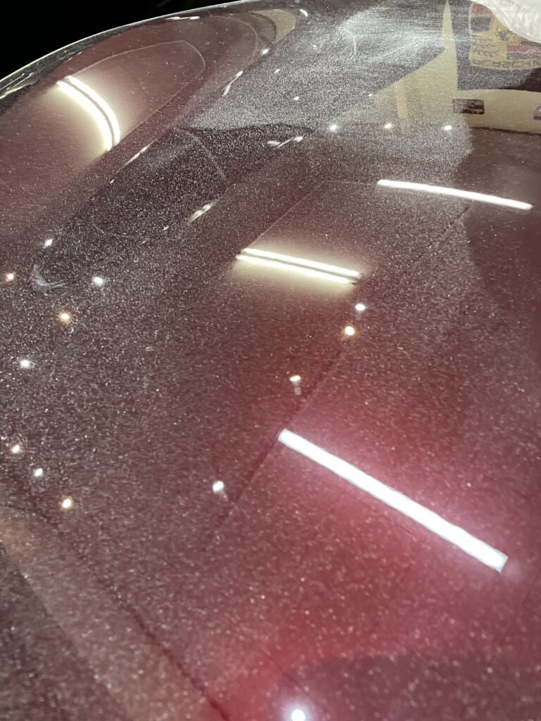 プロ研磨により、傷と共に古いコーティングが取れて粒の大きい粉が出ています。