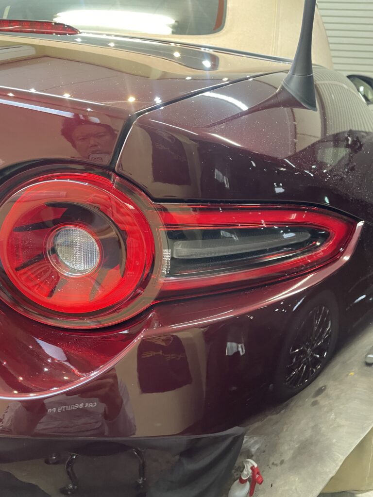 今回の車両は、マツダロードスターのプロ研磨とセラミックコーティング(EXE zero7)、ウィンドウガラス全面コーティング、内装コーティング、幌コーティング、ルーフとライト前後のプロテクションまで行いフルパッケージコーティングを施工しました。